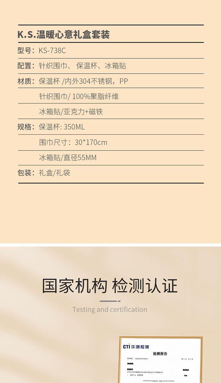 禮盒包含雙面絨圍巾1條;304不銹鋼保溫杯1個(gè)。