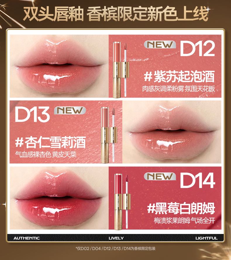 蜜絲婷微醺持色雙頭唇釉D14黑莓白朗姆【香檳限定】
