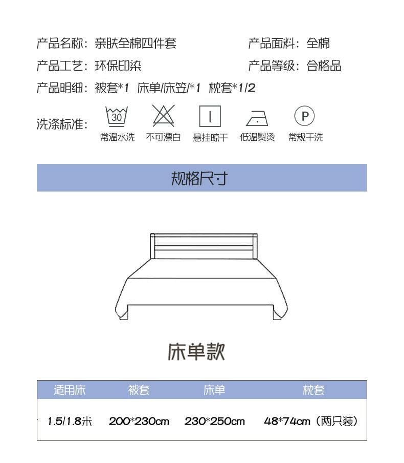 被套:200×230cm 床單:230×250cm 枕套:48×74cm 適用:1.5M-1.8M床 面料:棉 印染工藝:環(huán)保印花 風(fēng)格:田園風(fēng)格 包裝:手提禮盒