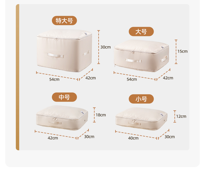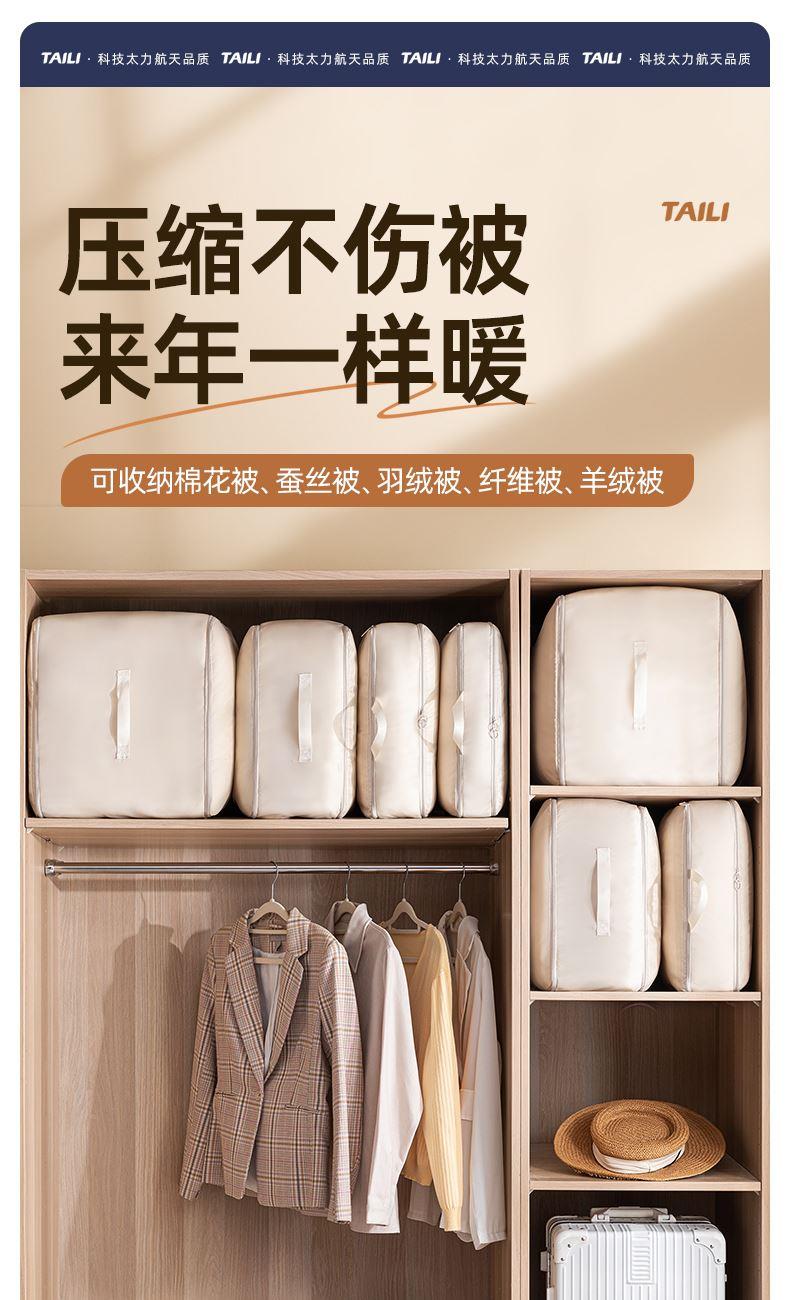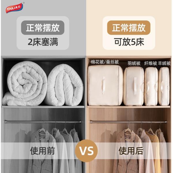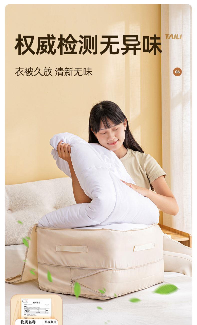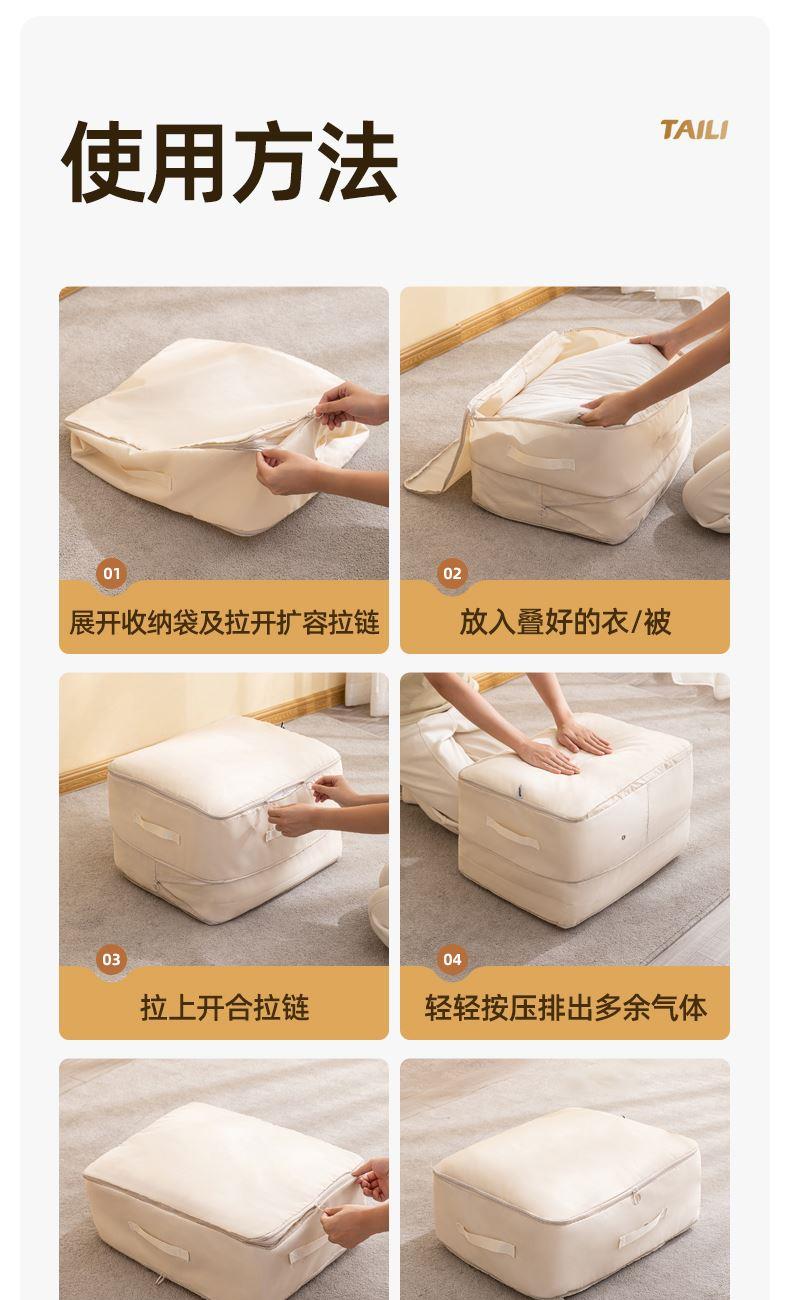 產(chǎn)品尺寸:54*42*50cm(1個) 材質(zhì):PE+斜紋布 封口方式:拉鏈 包裝清單:厚被收納袋 商品類型:收納 圖案:純色 功能:便攜,可壓縮 產(chǎn)品描述:牛津布包邊,耐用不風劃;加固提手,科學受力更耐用,按壓式收納