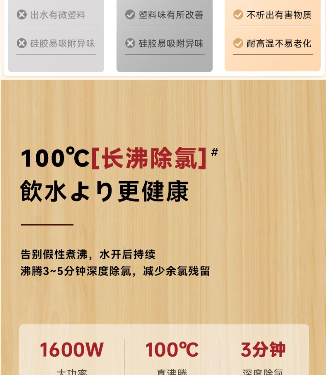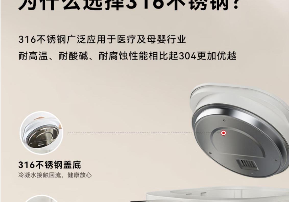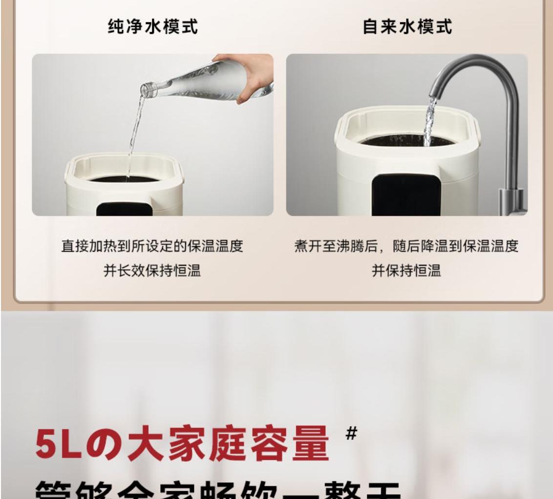316 不銹鋼內(nèi)膽0,涂層 0 塑料 無(wú)異味 1600W 大功率真沸騰 兩種模式,自來(lái)水 / 純凈水 11 段定溫,滿足全家沖飲需求 多重安全保護(hù),童鎖設(shè)計(jì)防燙傷 額定功率:1600W 溫度設(shè)定:11 檔 出水方式:電動(dòng) / 碰杯 水箱容量:5L 產(chǎn)品尺寸:199*305*312mm