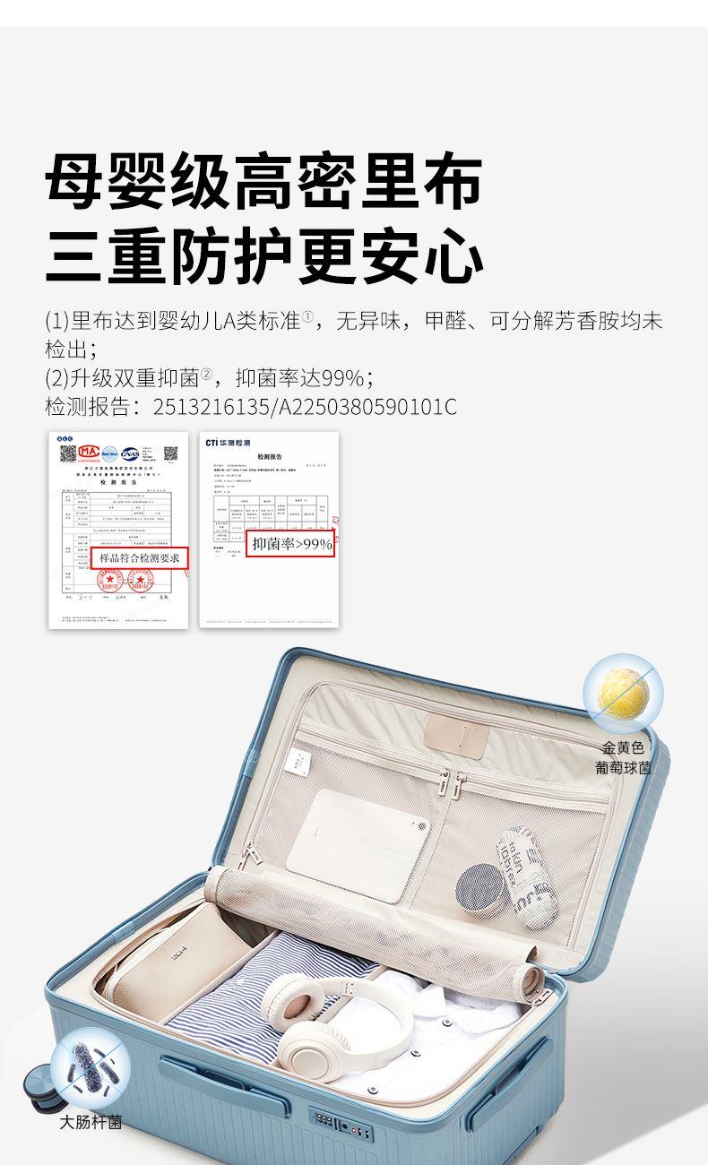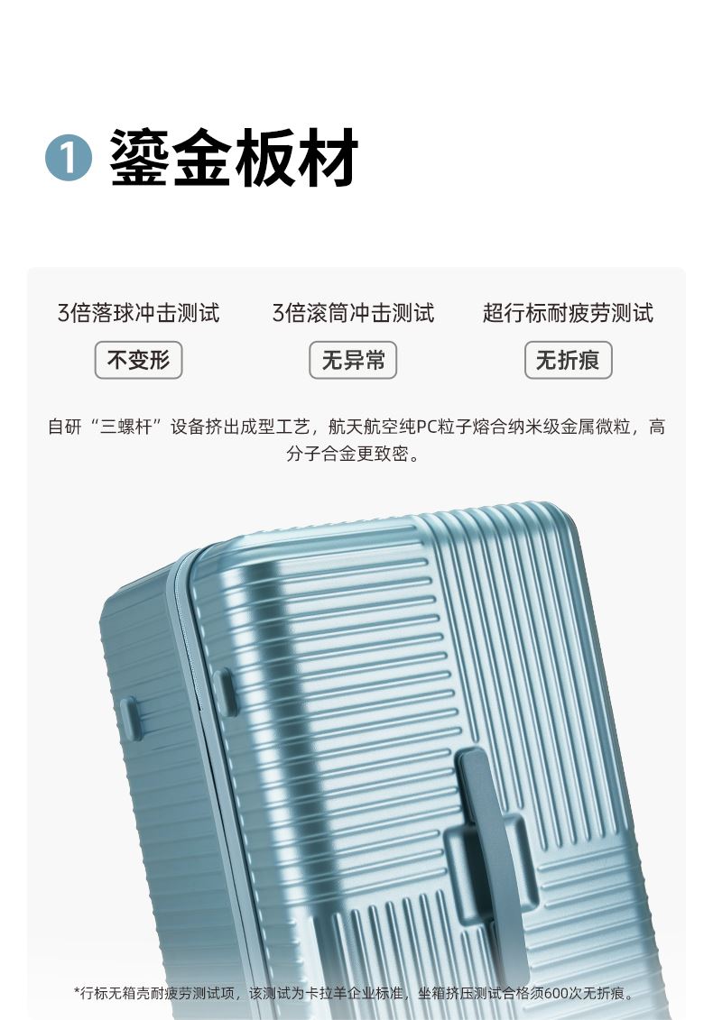 貨號:CX8125-20 主體面料:聚碳酸酯(PC);里料:織物 20寸顏色: 石英灰(玉白色) 凈重:3.11kg/44L