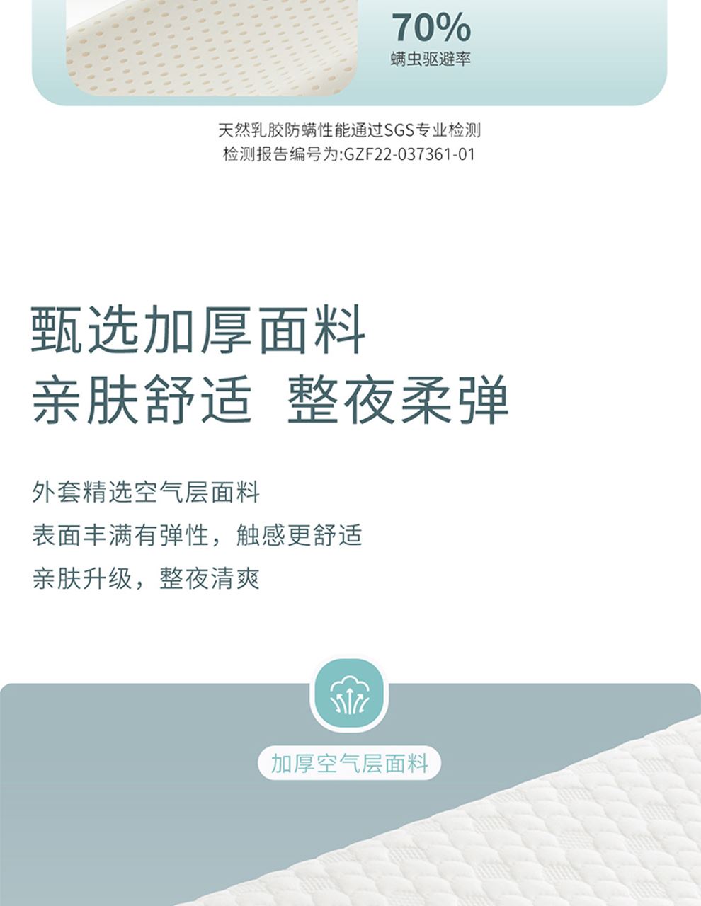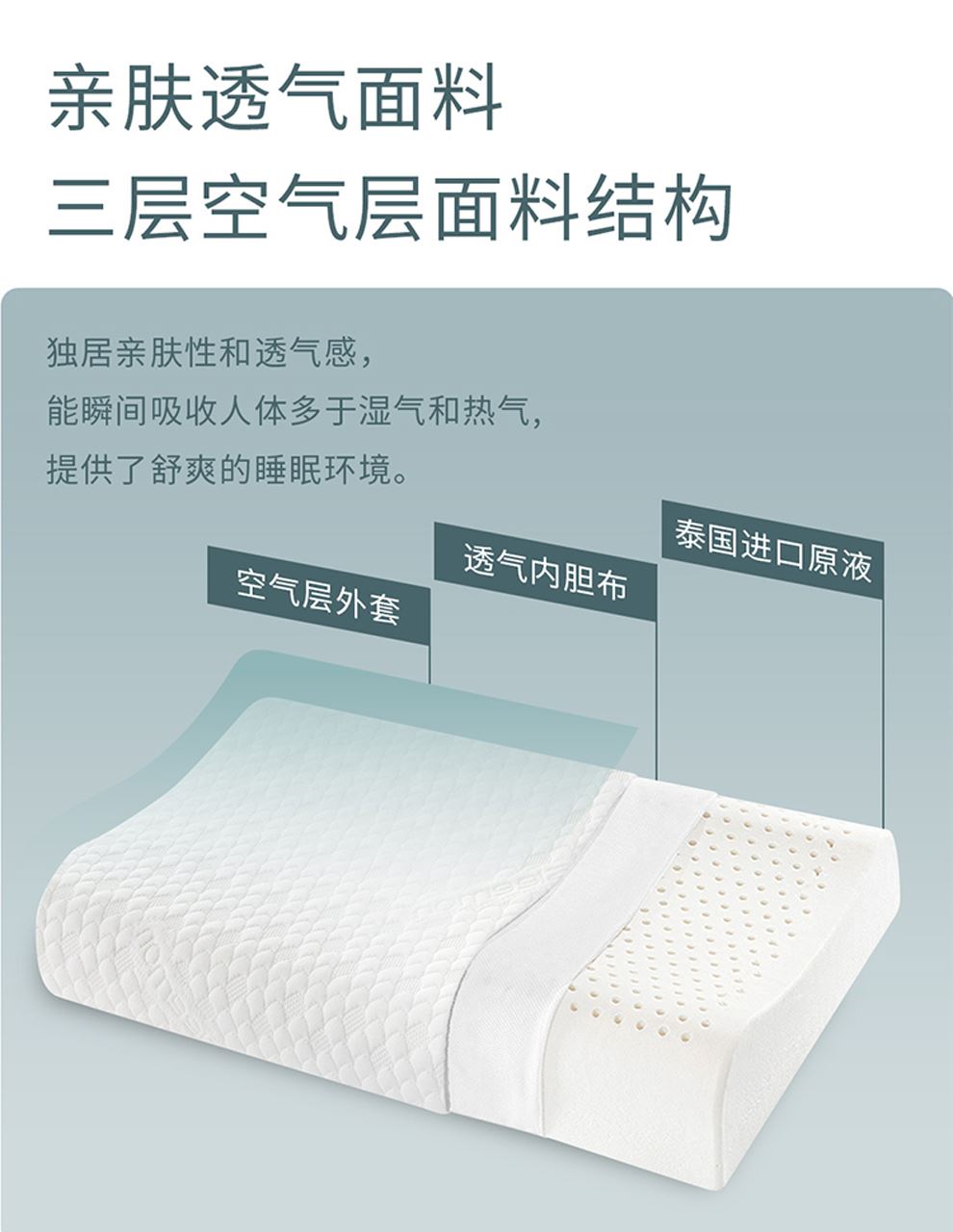 3.三層空氣層面料結(jié)構(gòu):兼具親膚性和透氣感,能瞬間吸收人體多余的濕氣和熱氣,提供舒爽的睡眠環(huán)境