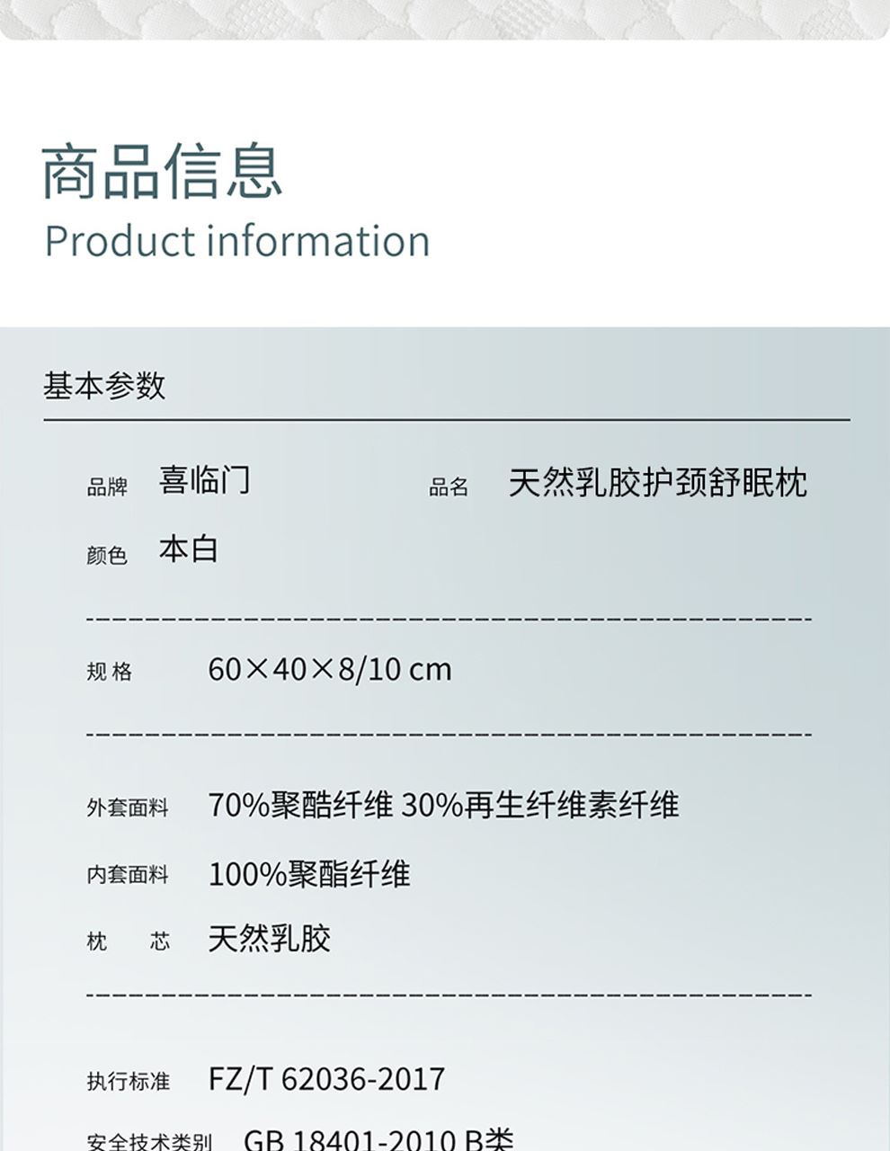 喜臨門泰國進(jìn)口天然乳膠護(hù)頸舒眠枕