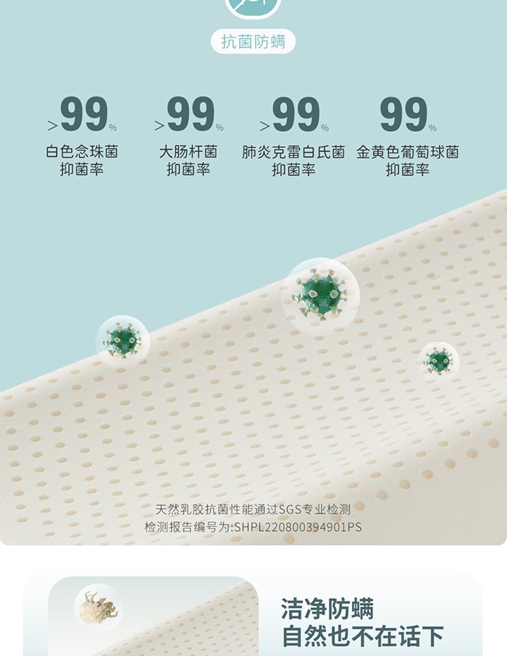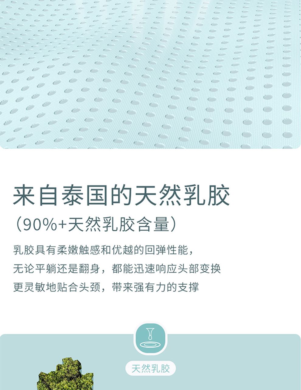 4.泰國天然乳膠:具有柔嫩觸感和高效回彈性能,無論平躺還是翻身,都能迅速響應(yīng)頭部變換,更靈敏地貼合頭頸。而且天然乳膠蛋白具有抑制細(xì)菌和防螨效果,守護(hù)身體健康