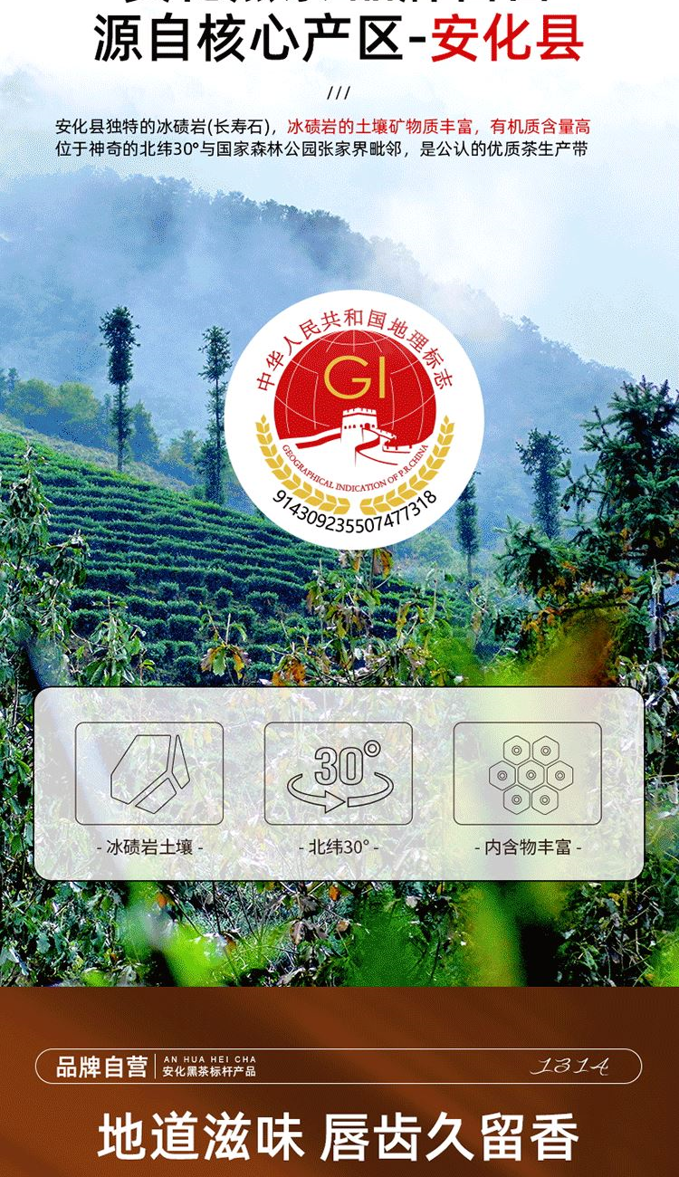 1、源自安化黑茶核心產(chǎn)區(qū)生態(tài)茶園,平均海拔800米以上,自然環(huán)境優(yōu),適合茶樹(shù)生長(zhǎng)。