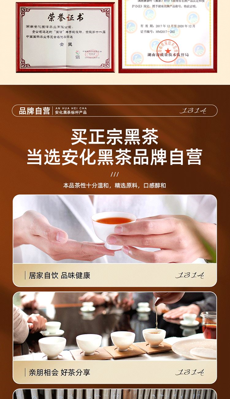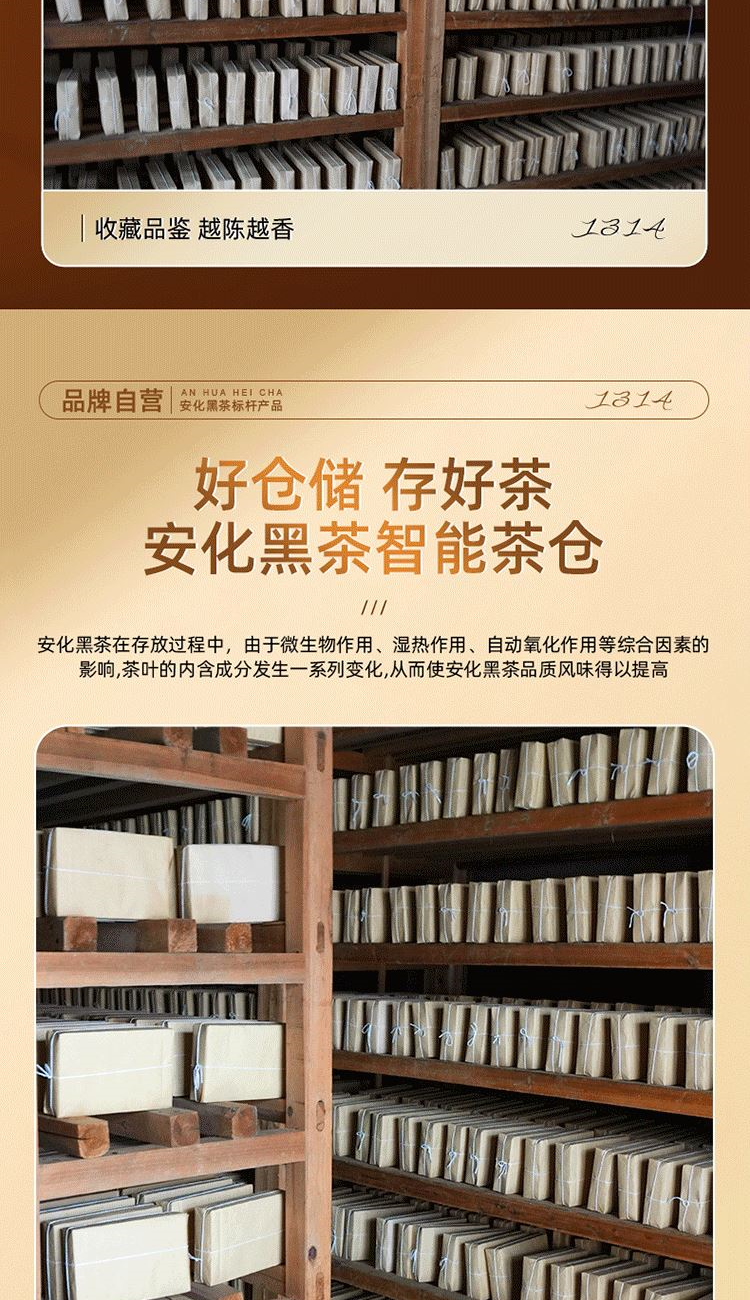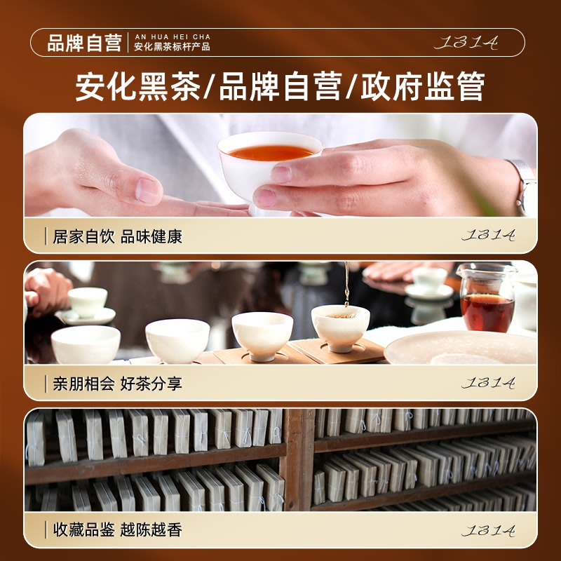 ③黑磚:13年安化核心產(chǎn)區(qū)陳年老料,含適量細(xì)嫩茶梗,入口爽滑回甘,適口性強(qiáng);