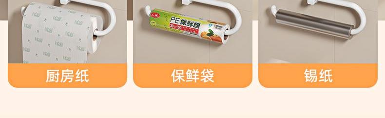 產(chǎn)品尺寸:306*80*171mm 材質(zhì):ABS 類別:普通置物架 適用場景:廚房 圖案:白色 產(chǎn)品描述:廚房好伴侶,免打孔壁掛卷紙架,一秒安裝,免釘免膠,防水防油,旋轉(zhuǎn)倒掛。
