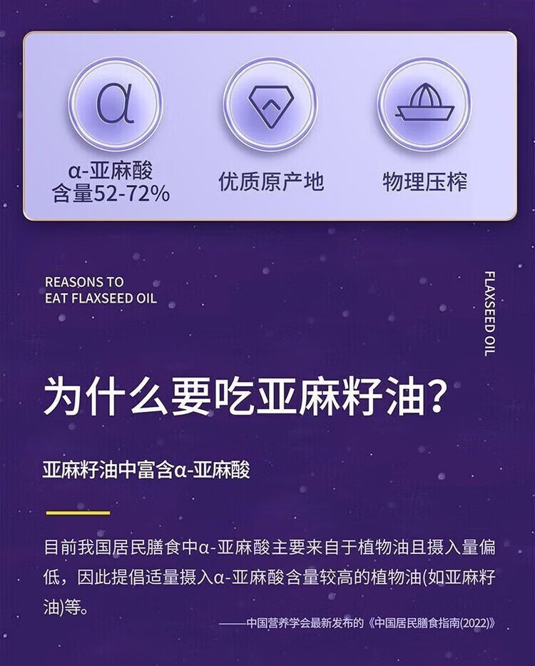 央企品控,高濃 Ω-3 精留:中糧全鏈把控,冷榨 + 高酚抗氧技術(shù) 99% 保留 Ω-3 亞麻酸,補(bǔ)充 ALA+DHA+EPA 三重營(yíng)養(yǎng)