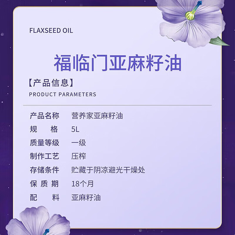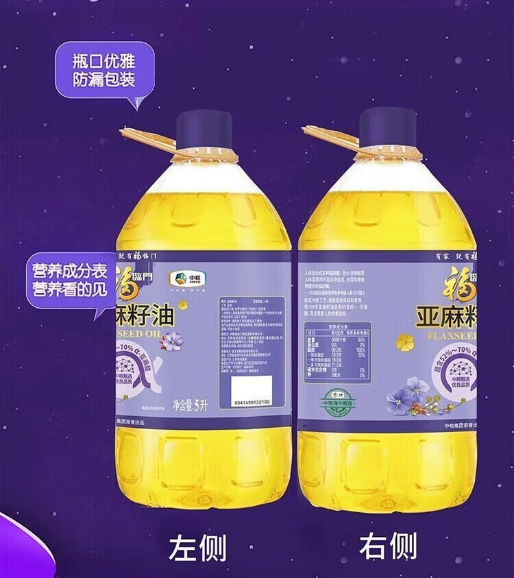中糧福臨門(mén)營(yíng)養(yǎng)家亞麻籽油5L