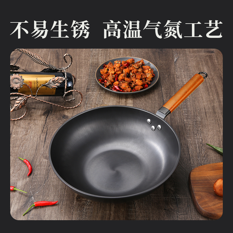 1、鍋身采用高溫氣氨室化鐵技術(shù),無涂層,健康安全。