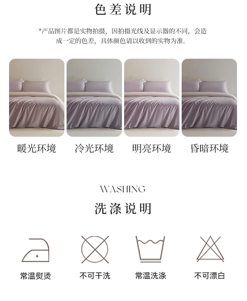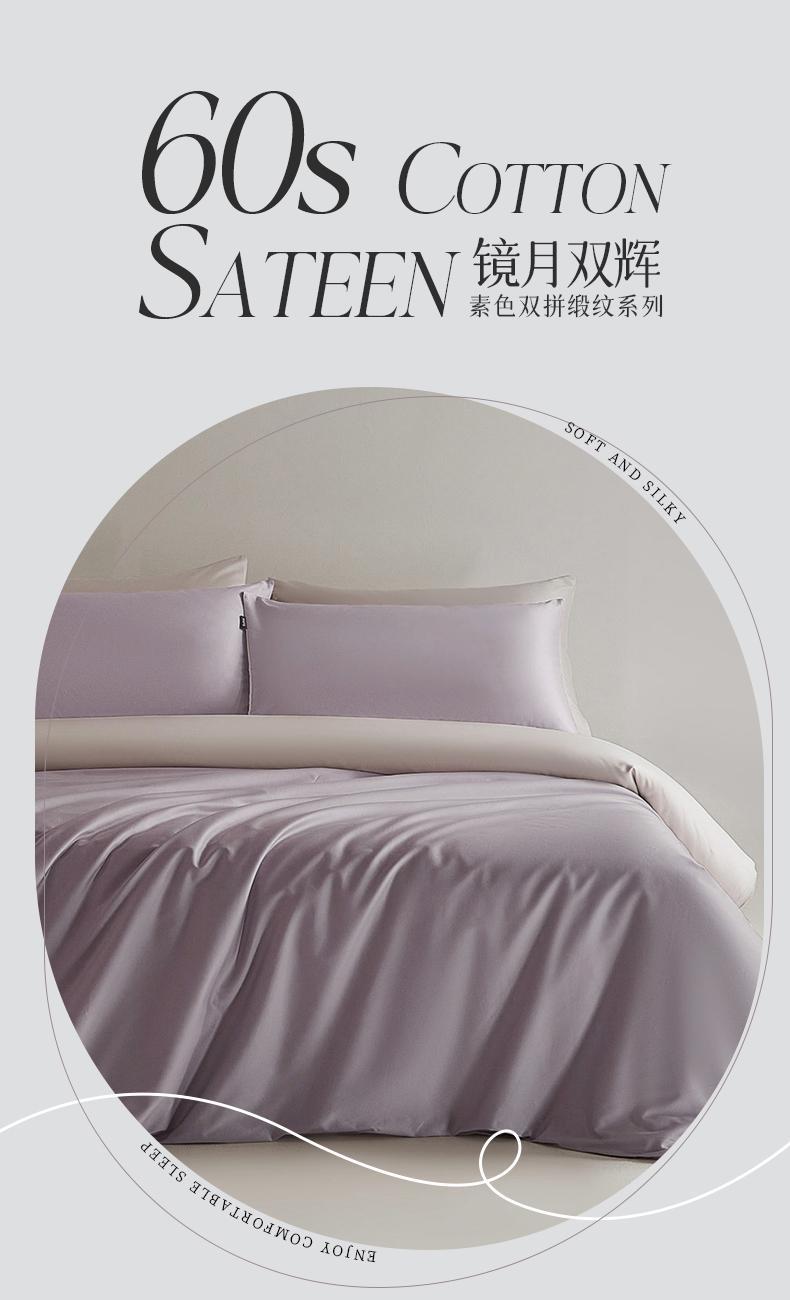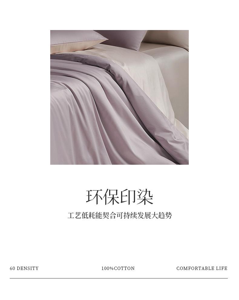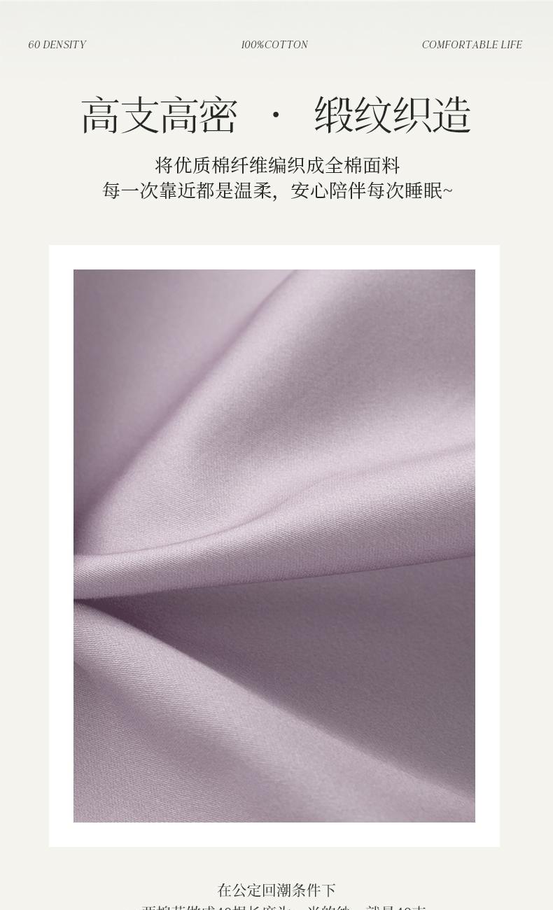 規(guī)格:床單款 1.5-1.8米床用 被套200*230 床單230*250 枕套48*74 面料:棉 60支 工藝:暗合工藝 花色:粉荔,麥珈,青霧,松灰,紫菱 60支長絨棉面料,良好的日照條件和晝夜溫差,造就高品質(zhì)的潔白綿柔其織成的面料更加細(xì)絨柔軟親膚翻倍,把陽光和自然蓋在身上,AB面素色雙拼 每一面都精彩,簡單干凈的純色搭配,做工精致工藝,利落信封枕套大方優(yōu)雅,床單款適用度高多種床型都適用