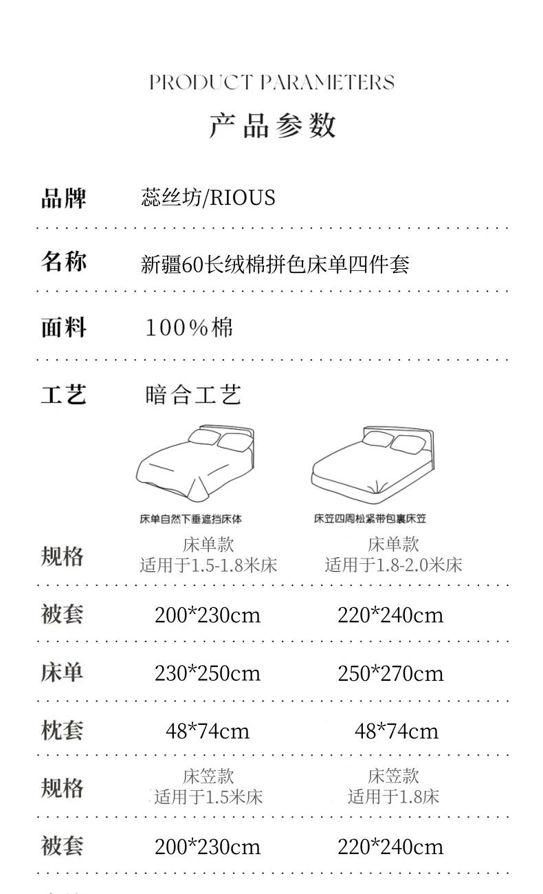 蕊絲坊家紡新疆60長絨棉拼色床單款四件套 蕊絲坊家紡新疆60長絨棉拼色床單款四件套