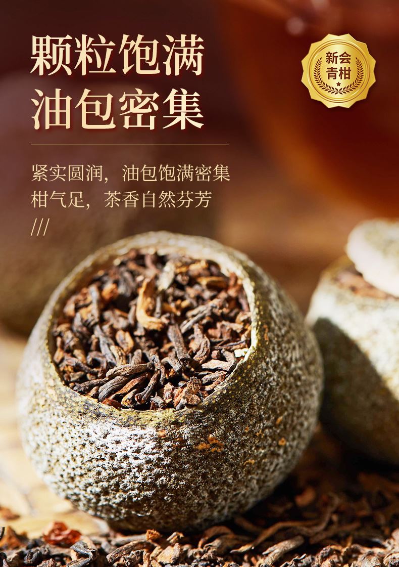 2.半生曬工藝,低溫與日曬結(jié)合,油包破壞率低,柑油晶活性強匠心調(diào)配。