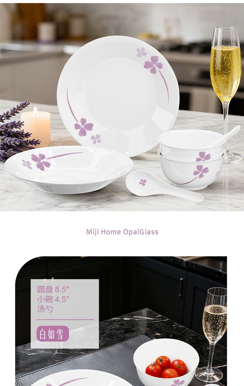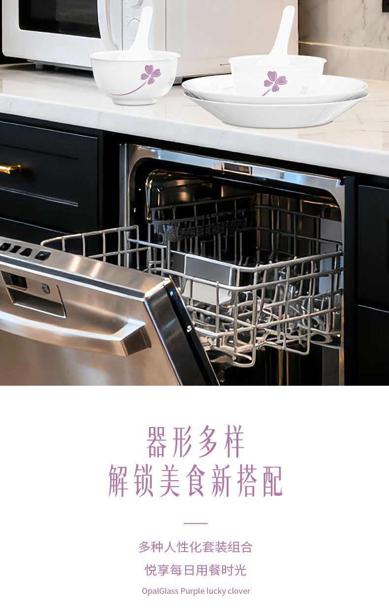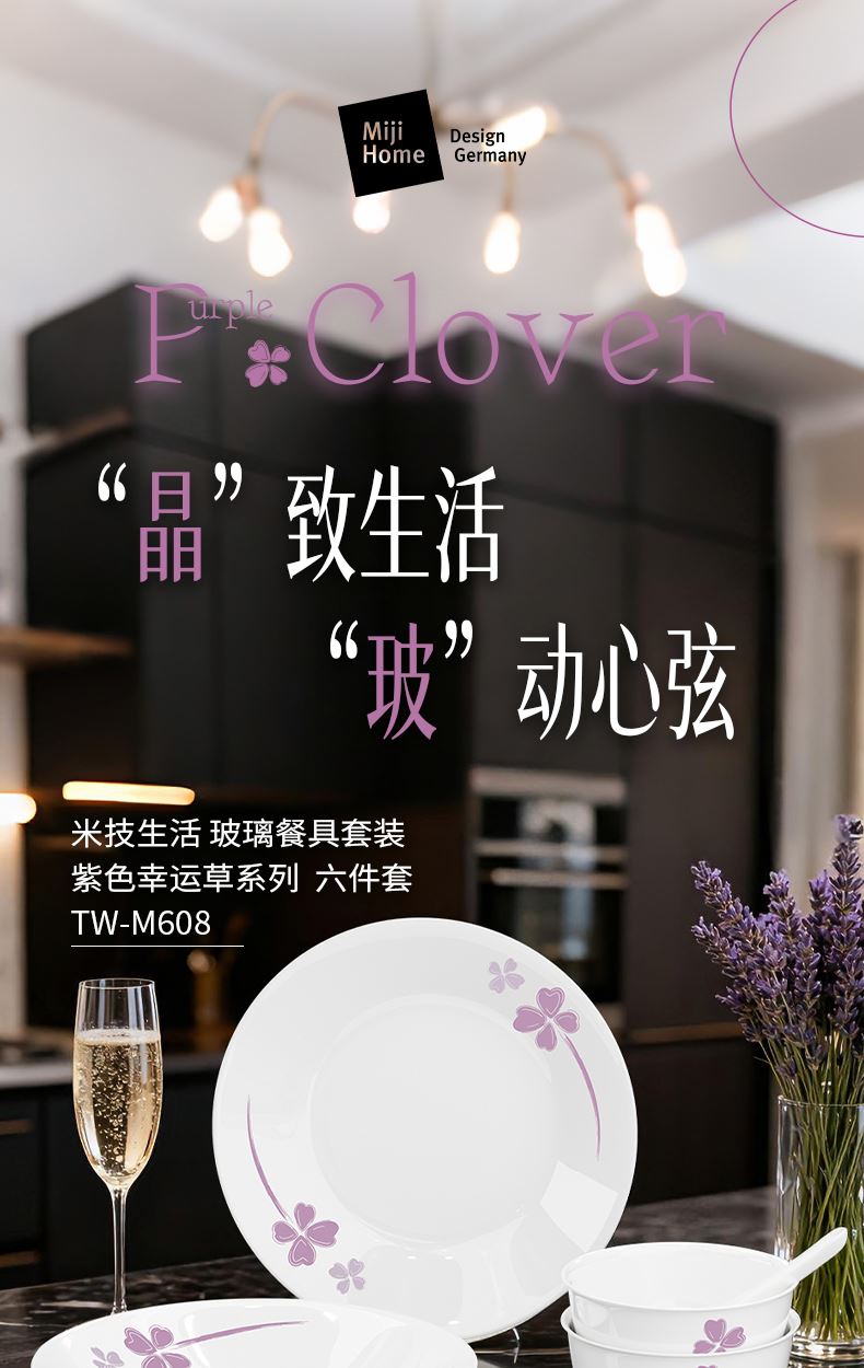 米技生活玻璃餐具套裝紫色幸運(yùn)草系列(六件套)