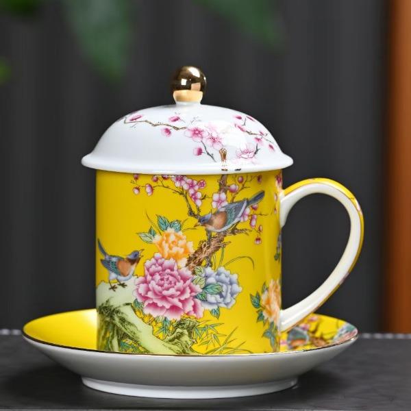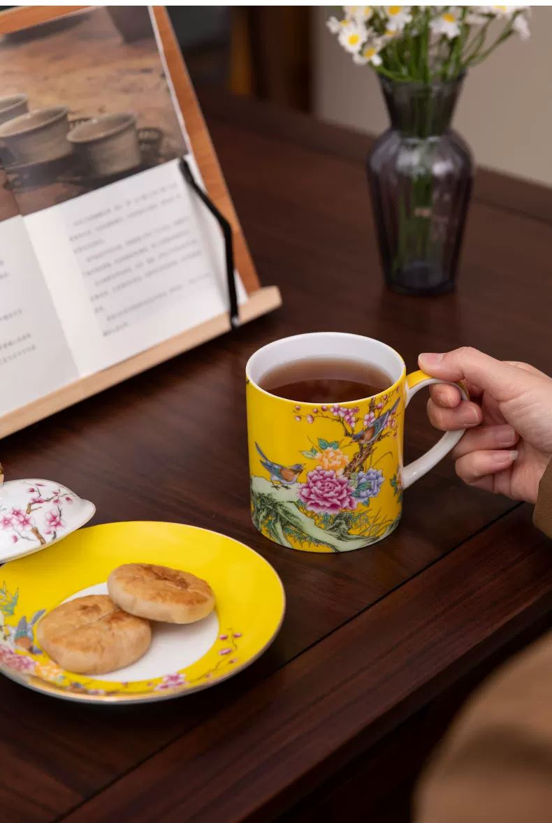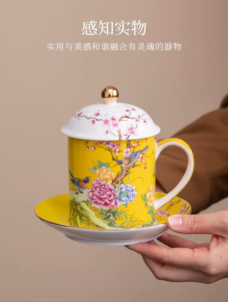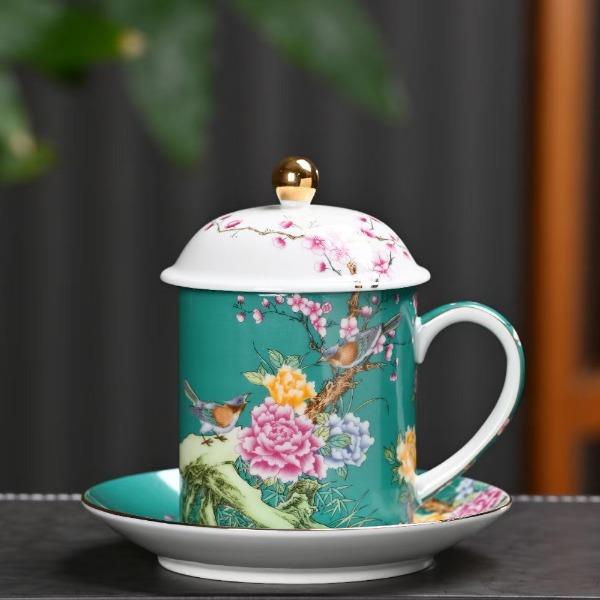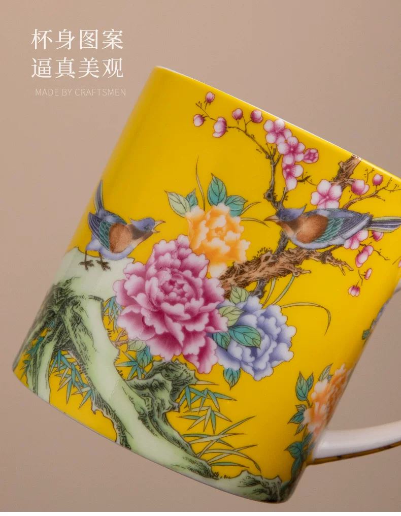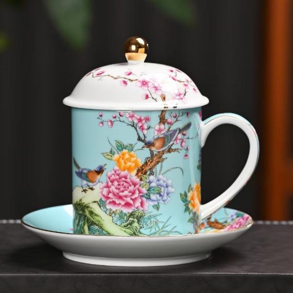 瓷語花香喜上眉梢琺瑯彩辦公杯