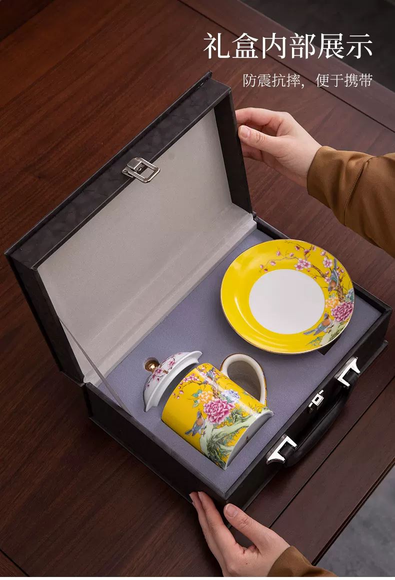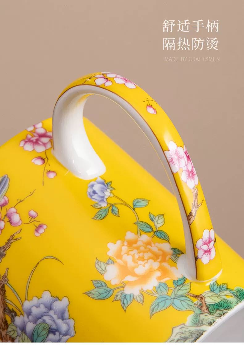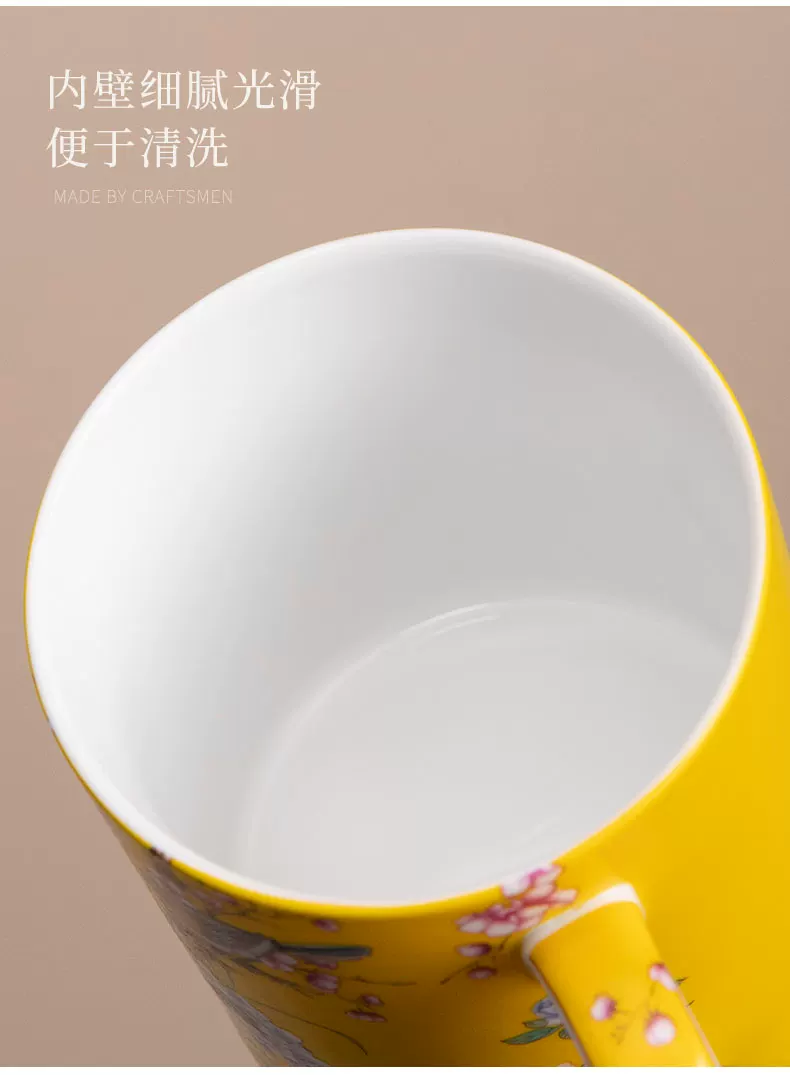 辦公杯:15.8*15厘米400ml 禮盒:31*21*12厘米 精選高嶺土等優(yōu)質(zhì)原料,琺瑯彩工藝,經(jīng)高溫?zé)贫?,質(zhì)地致密,氣孔率小,吸水率低,不易吸附異味,清洗便捷。