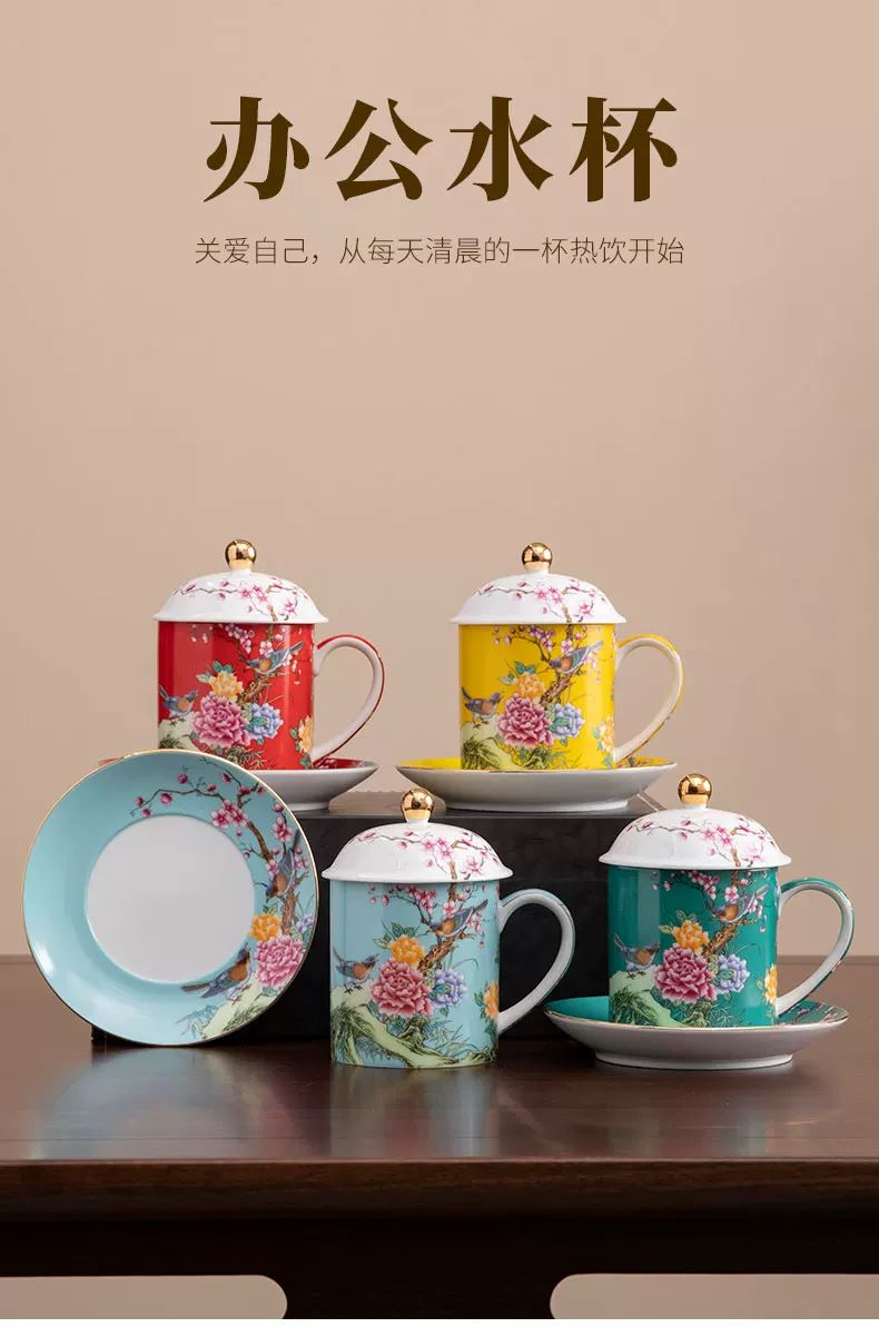 瓷語花香喜上眉梢琺瑯彩辦公杯 瓷語花香喜上眉梢琺瑯彩辦公杯
