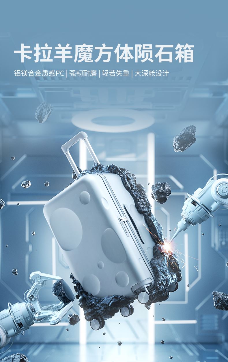 卡拉羊隕石箱魔方體行李箱CX8126-20隕石黑 禮品已成功加入PPT!
