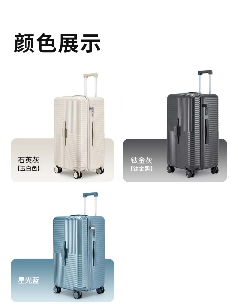 貨號(hào):CX8125-20 主體面料:聚碳酸酯(PC);里料:織物 20寸顏色: 鈦金灰(鈦金黑) 凈重:3.11kg/44L
