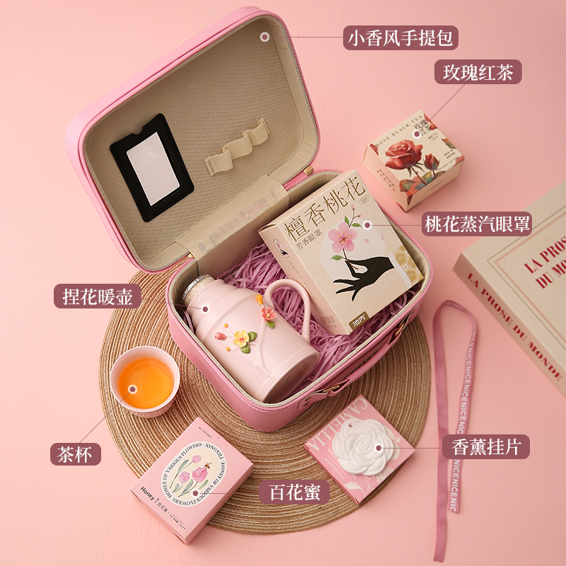 瓷語(yǔ)花香女神節(jié)母親節(jié)實(shí)用化妝箱商務(wù)茶具套裝