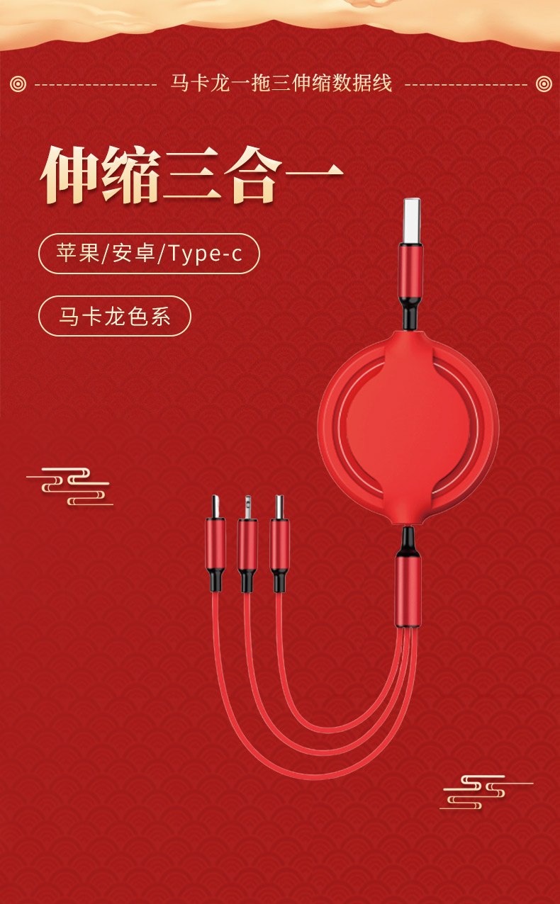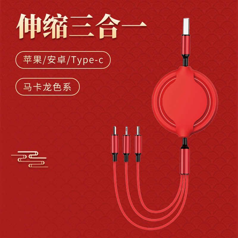 馬卡龍一拖三伸縮數(shù)據(jù)線: