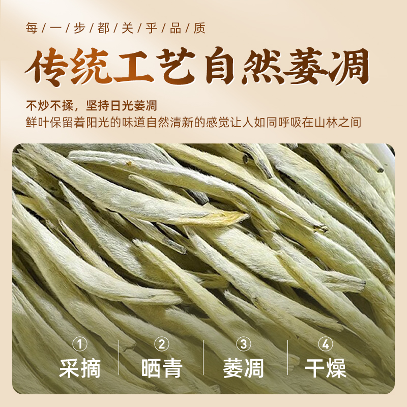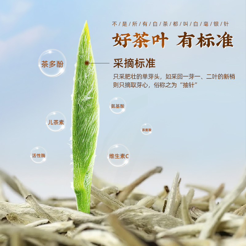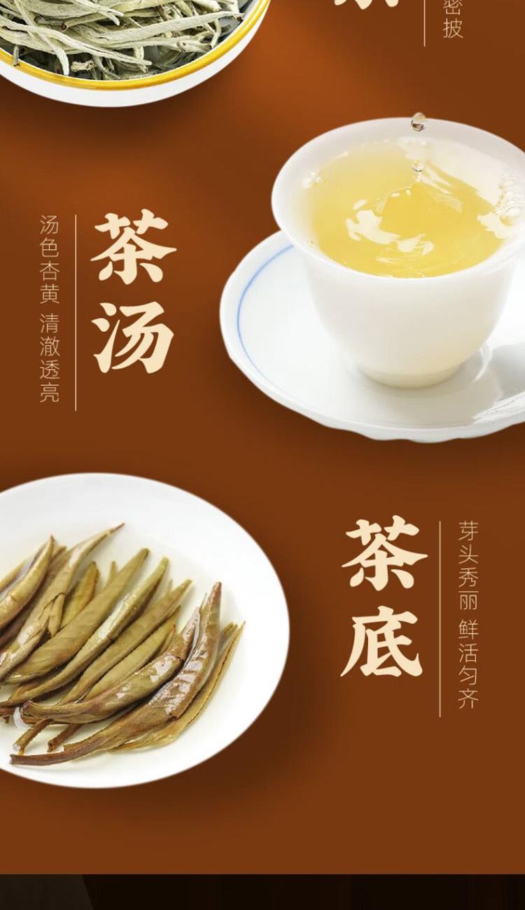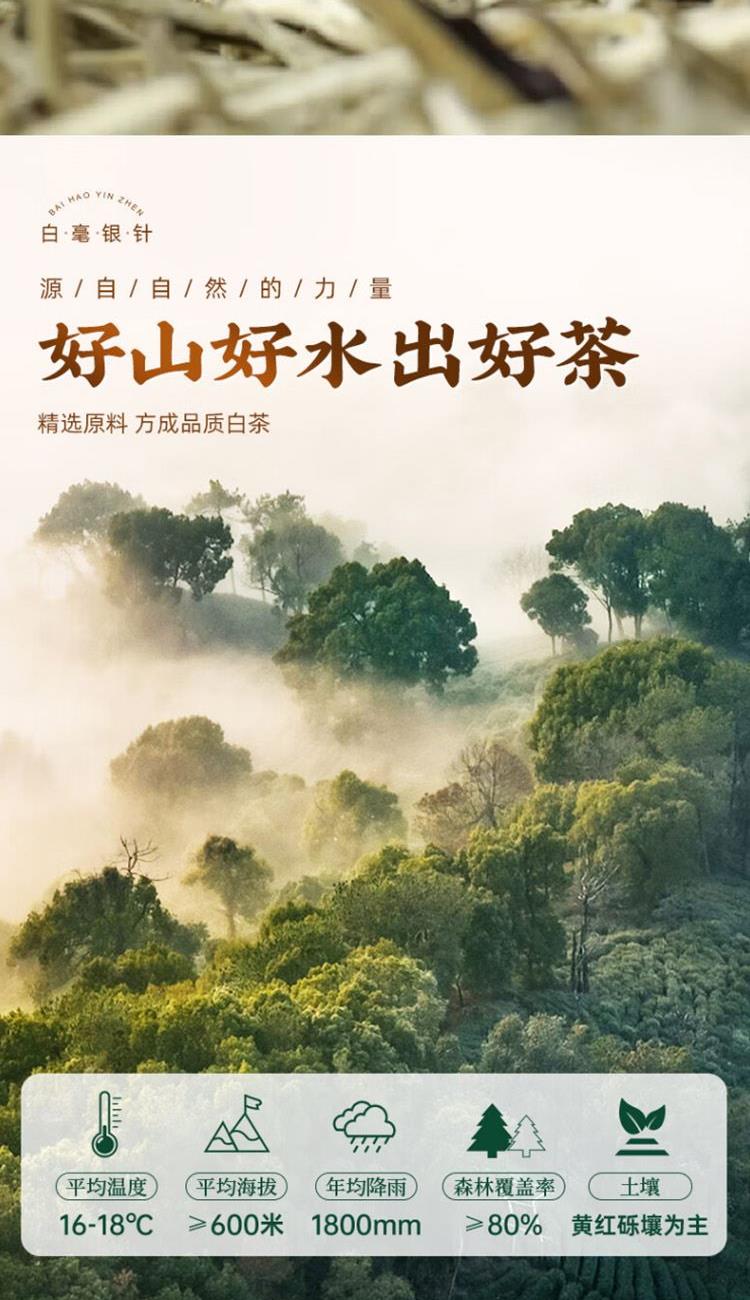 類別:白毫銀針 規(guī)格:200g 包裝:禮盒裝配手提袋 產(chǎn)品介紹: 1.金獎品質(zhì),榮獲茶博會金獎 2.高山茶園老樹茶,好山好水出好茶 3.明前頭采,手工采摘單芽,一年只采一次,量少而珍 4.內(nèi)質(zhì)豐富,滋味鮮甜 5.干茶=芽頭粗壯 滿披白毫 茶湯=鮮爽甘甜 清香濃醇 茶底=芽頭肥碩 鮮亮均勻 6.臻品雙罐禮盒,顆顆優(yōu)選,甄選芽頭,送禮有面