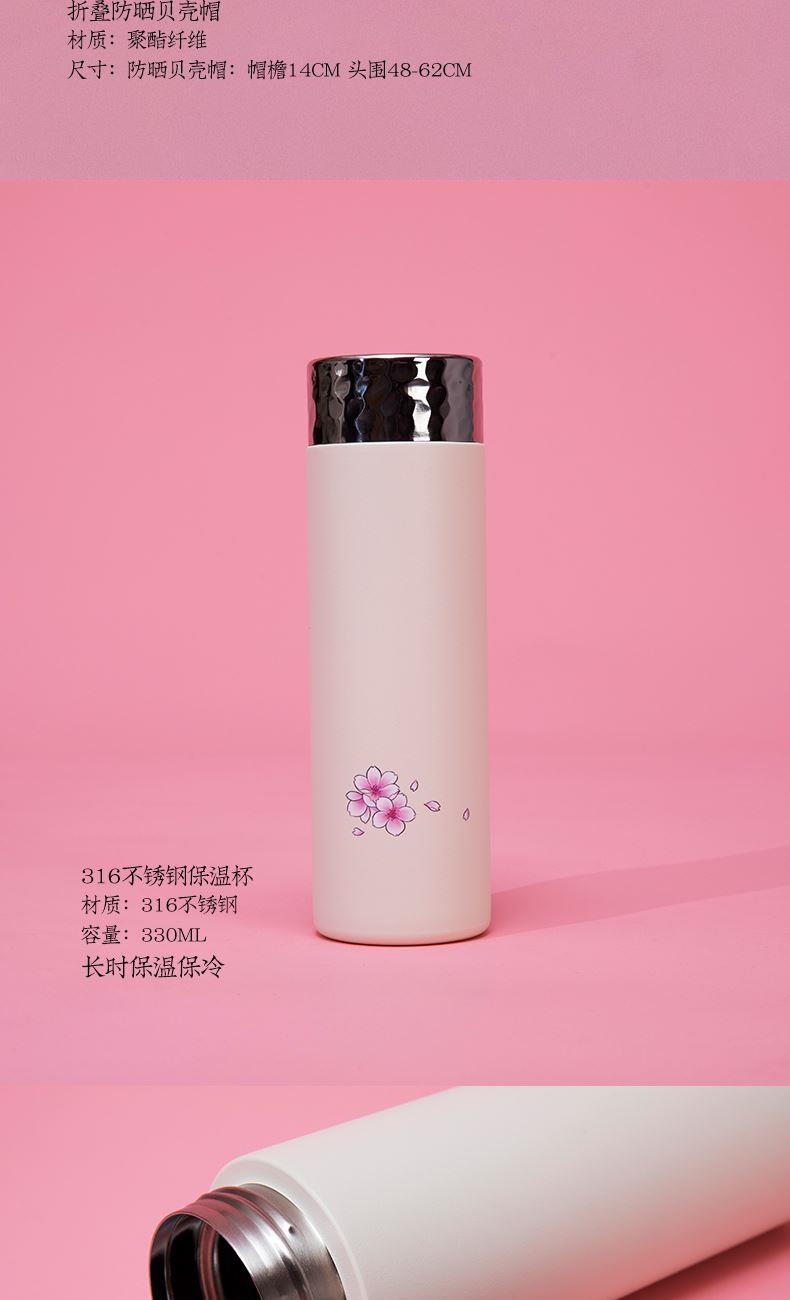 配置:防曬貝殼帽+316不銹鋼保溫杯 材質(zhì):錦綸+滌綸+不銹鋼 UPF50+阻隔96%紫外線 尺寸:防曬貝殼帽:帽檐14cm 頭圍48-62cm 保溫杯:330ml 包裝:禮盒(248*228*80mm)+手提袋