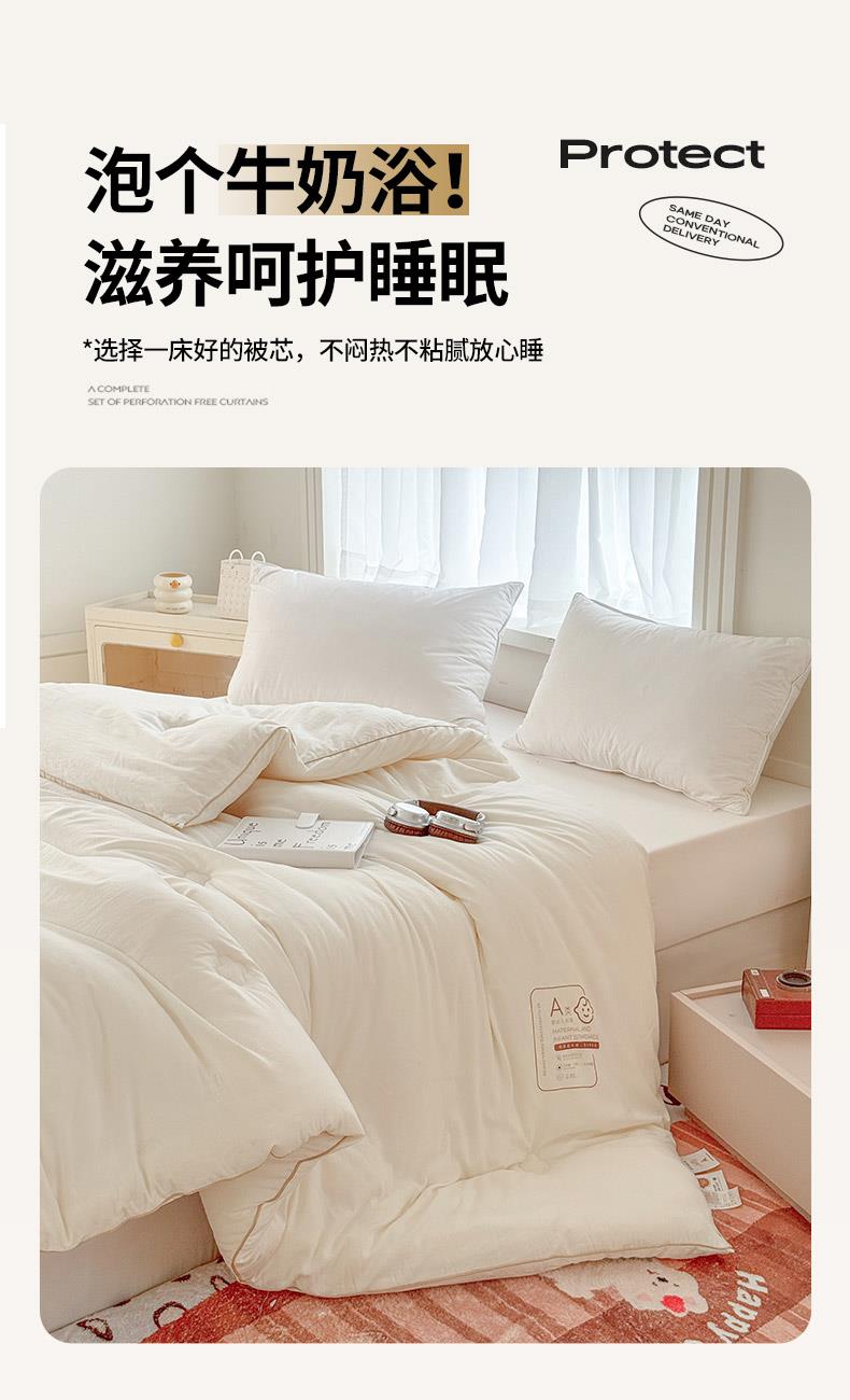 規(guī)格:200*230cm(6斤) 面料:聚酯纖維 填充:10%聚酯纖維90%聚酯纖維 花色:baby-米白、baby-豆沙、baby-英灰 軟糯滋養(yǎng)大豆被,暖暖的像冬日太陽(yáng),倍感舒心。纖維整張?zhí)畛?,牛奶般溫?rùn),透氣不悶熱。高克重面料,不易起球,親膚柔軟。