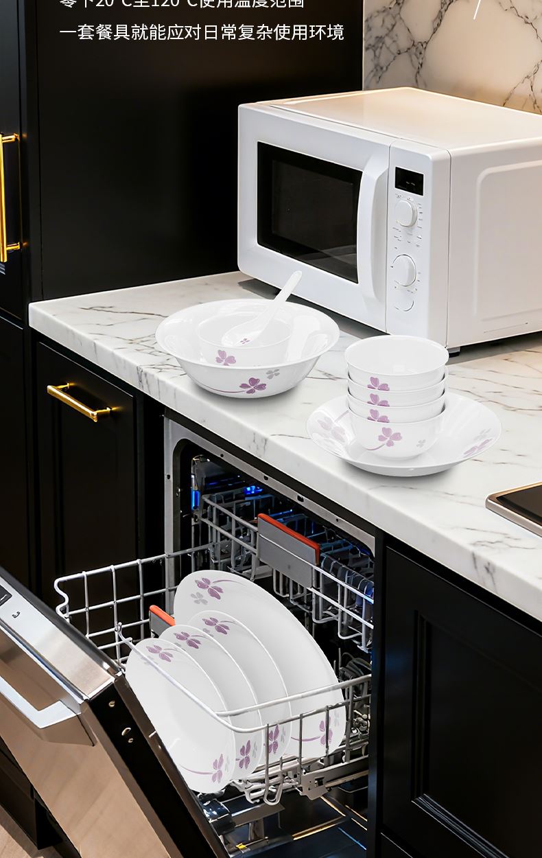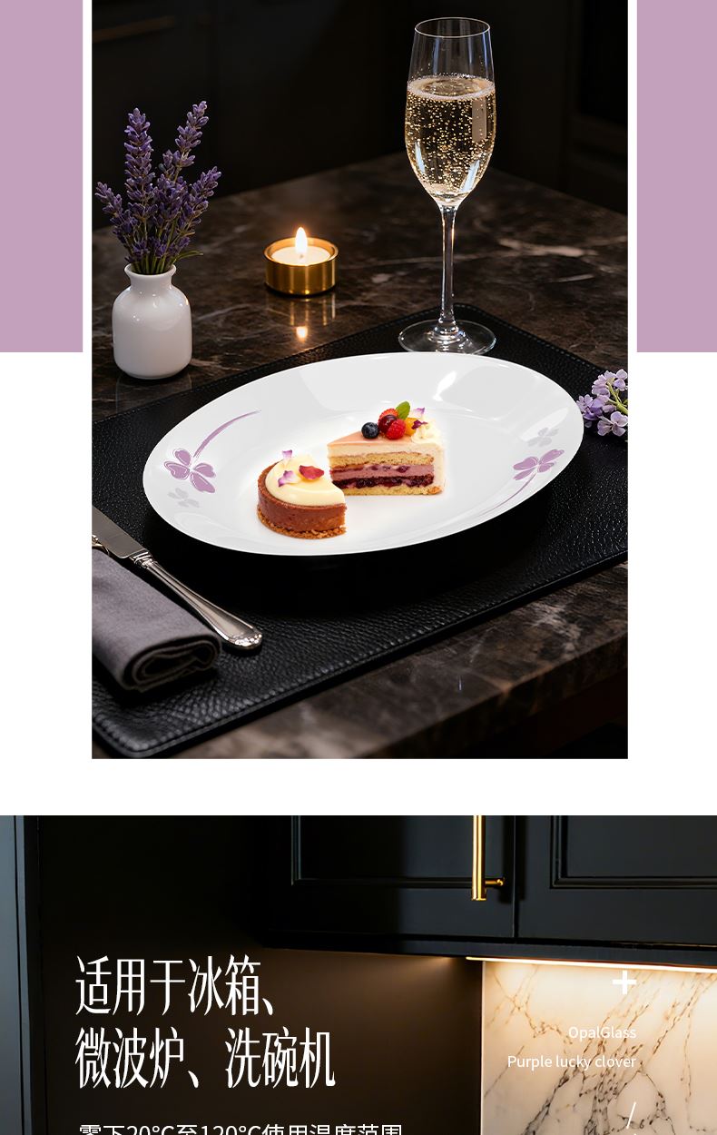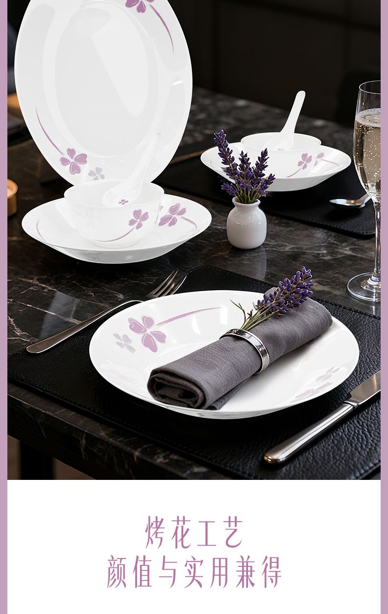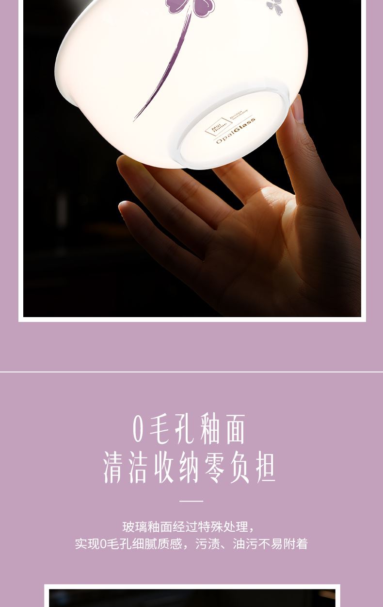 米技生活玻璃餐具套裝紫色幸運草系列(十八件套)