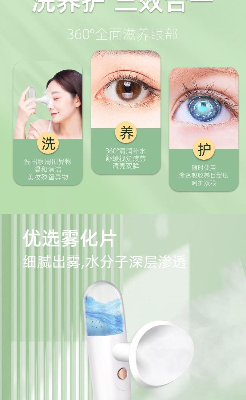 1.開啟護(hù)眼新方式,洗去眼部疲勞干澀釋放眼睛壓力; 2.一鍵出霧,滋養(yǎng)雙眸,柔和噴霧深層滲透,吸收更安全衛(wèi)生; 3.洗養(yǎng)護(hù)三效合一,360全面滋養(yǎng)眼部; 4.硅膠眼罩 柔軟親膚,弧形設(shè)計(jì)貼合眼鏡,360養(yǎng)護(hù); 5.大容量電池,補(bǔ)電無憂; 6.6種按摩模式守護(hù)你的"睛"彩世界;