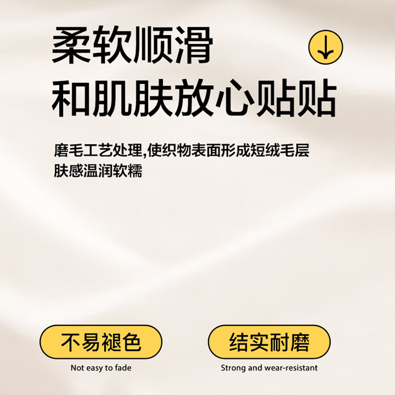 2、親膚舒適:經(jīng)磨毛工藝處理,織物表面形成短絨毛層,膚感溫潤(rùn)軟糯、柔軟順滑