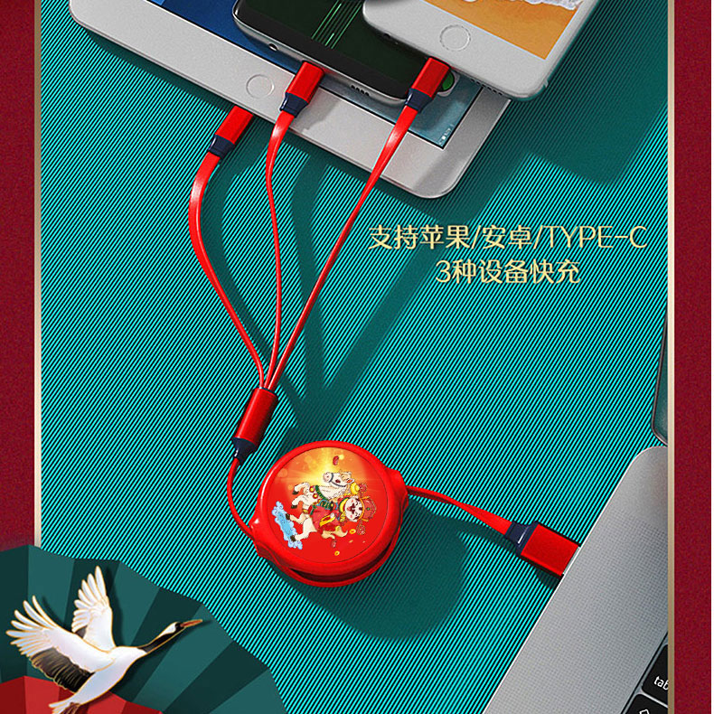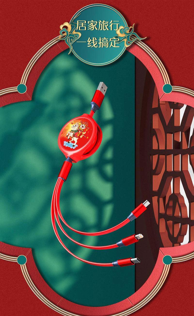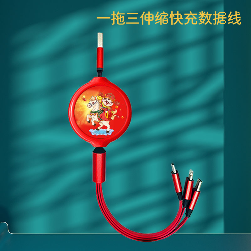 馬年一拖三拉伸數(shù)據(jù)線:美好寓意,馬上好運(yùn),好運(yùn)連連??沙潆娙魏问謾C(jī),數(shù)碼設(shè)備接口。 自由伸縮,小巧便攜。