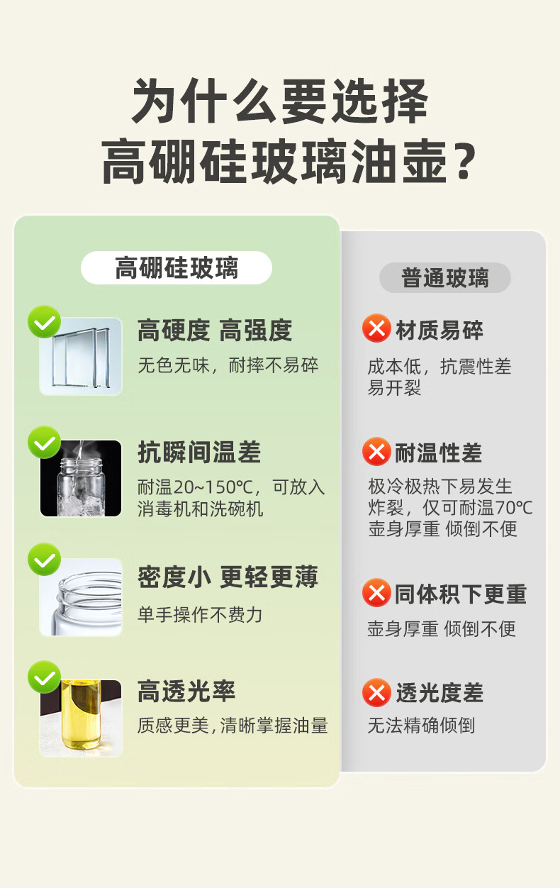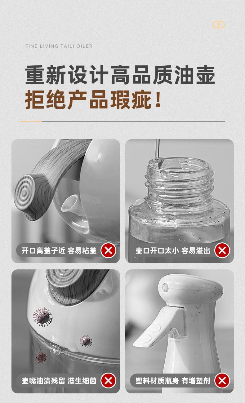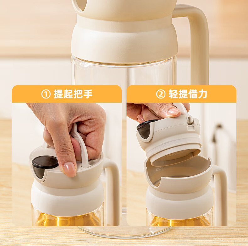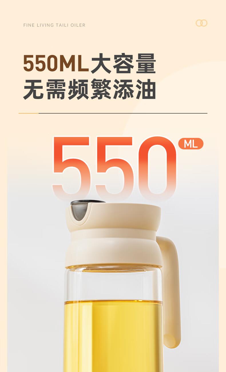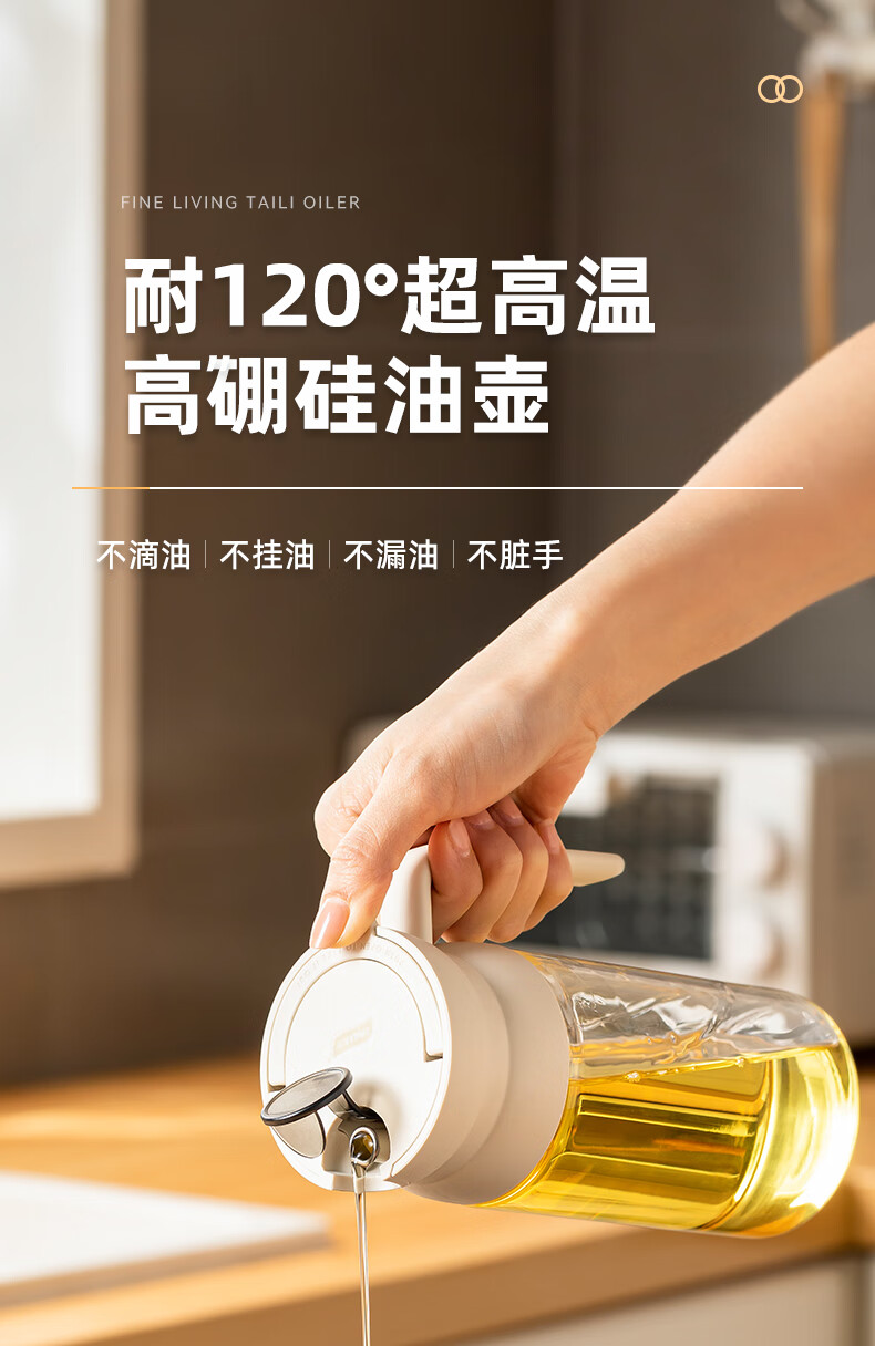 產(chǎn)品尺寸:11.5*8*19cm(1個(gè)裝) 容量:550ml 材質(zhì):PP,ABS,硅膠,高硼硅玻璃 包裝清單:高硼硅自動(dòng)開(kāi)合油壺550ml*1個(gè) 圖案:透明 功能:自動(dòng)出油,自動(dòng)回油 產(chǎn)品描述:550ml大容量,可拆卸易清洗,高硬度高強(qiáng)度高透光率