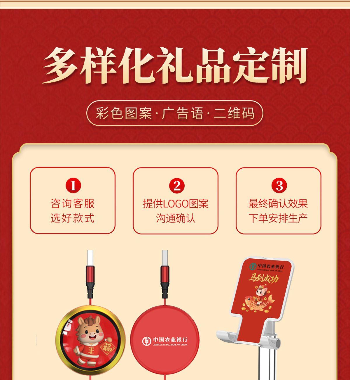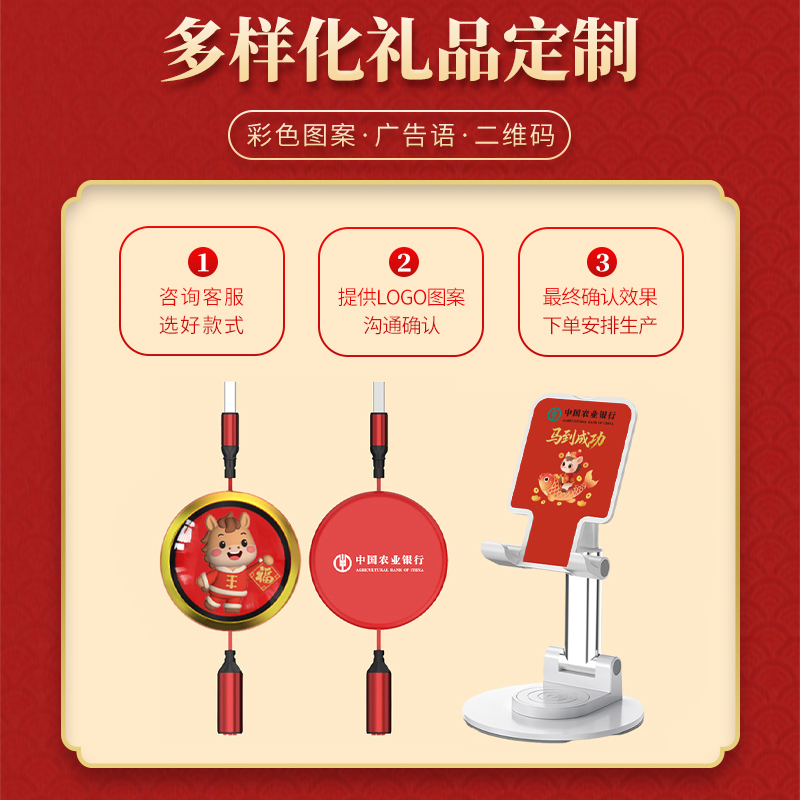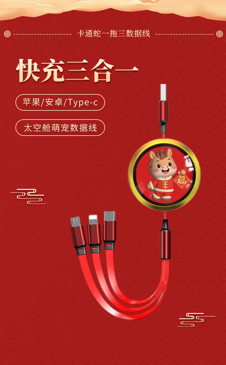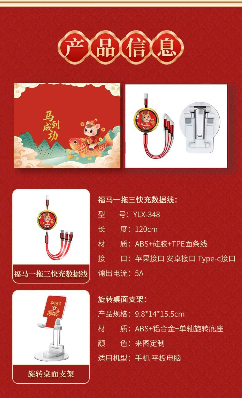 福馬一拖三快充數(shù)據(jù)線: 長 度:120cm 材 質:ABS+硅膠+TPE面條線 接 口:蘋果接口 安卓接口 Type-c接口 輸出電流:5A 旋轉桌面支架: 產(chǎn)品規(guī)格:9.8*14*15.5cm 材 質:ABS+鋁合金+單軸旋轉底座 顏 色:來圖定制 適用機型:手機 平板電腦 工藝:UV彩印(可定制圖案+LOGO) 禮盒尺寸:22.4x18*3.4cm 標配:禮盒